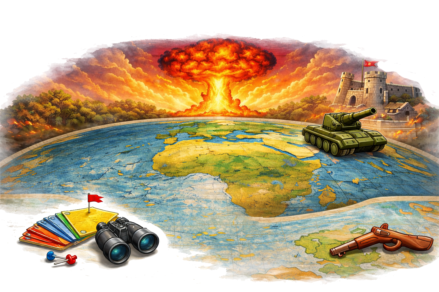 Eliminate all rivals and dominate the world map. Rise from commander to conqueror across 42 territories.